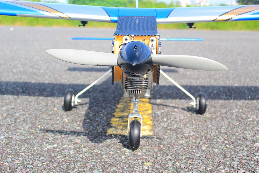 Trainer de grande taille pour les débutants qui souhaitent commencer avec un modèle plus grand et plus stable. Ce modèle est optimisé pour les moteurs 20cc essence de type DLE.