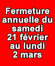 Dimanche et lundi : Fermés