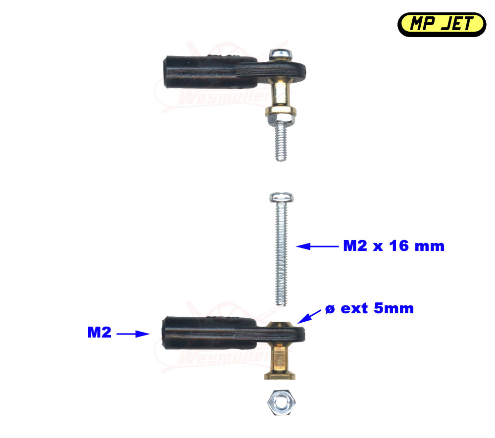 Chape à rotule V1 sans embout. M2/1,8mm. 6 pièces