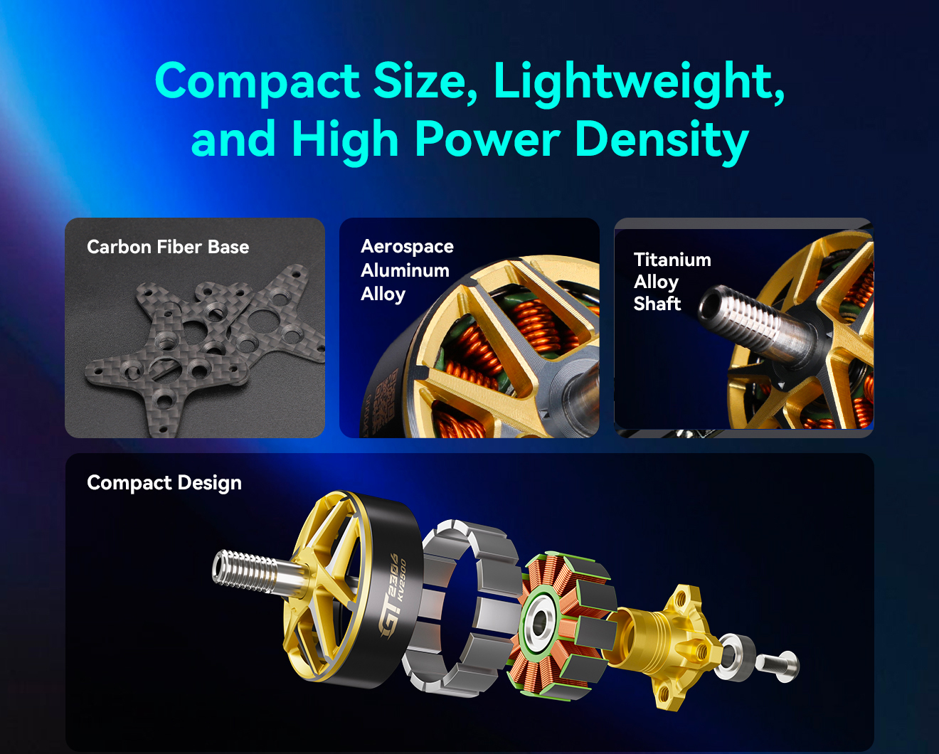 - Boîtier en aluminium de qualité aérospatiale – Durabilité extrême avec pénalité de poids zéro.Arbre en alliage de titane – Assure un équilibre dynamique sans faille pour un fonctionnement sans vibration et à haut RPM.
