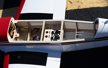 Les panneaux d'aile disposent d'une clef d'aile en tube d'aluminium solide pour faciliter le transport et le stockage. Lorsque le modèle est en position verticale, l'accès complet à l'intérieur du modèle se fait par une grande trappe supérieure qui simplifie tout entretien et changement de batterie.