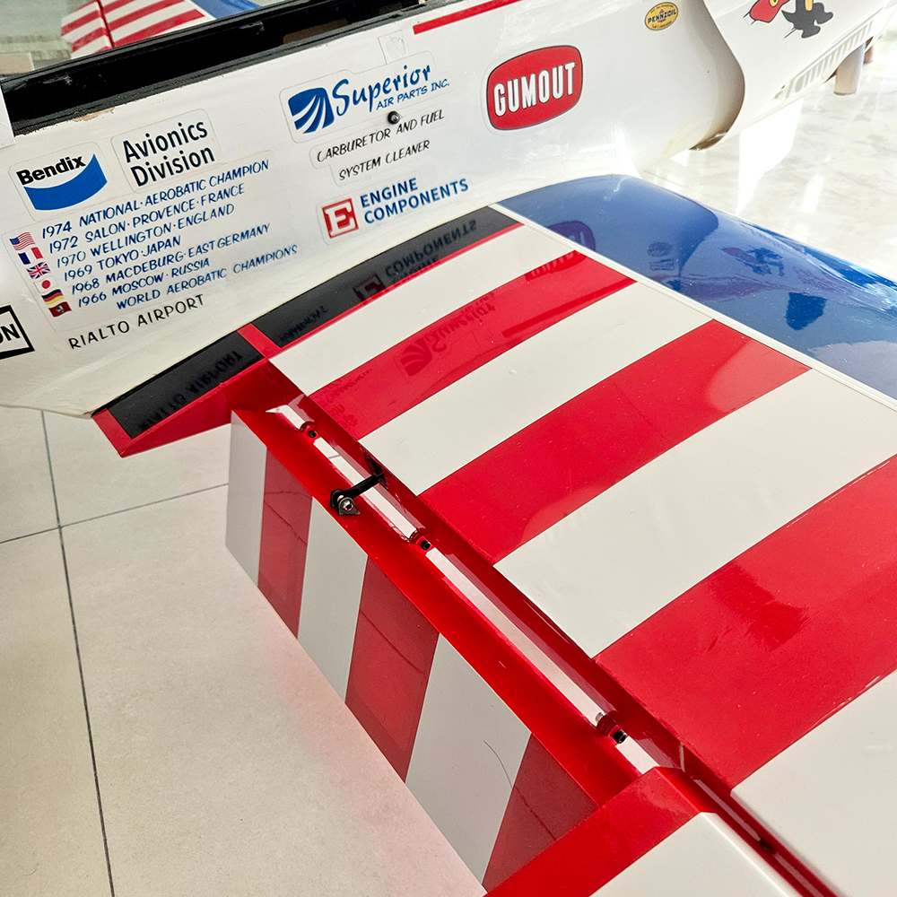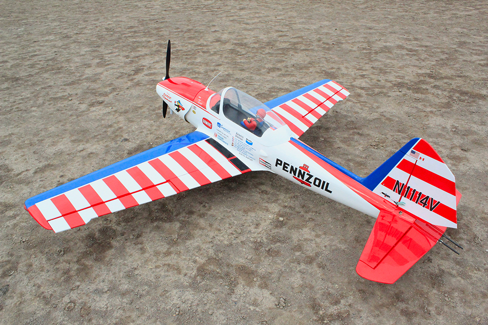 | Le modèle prémonté en bois et balsa avec renfort en fibre de carbone. Clef d'aile en fibre de carbone. Train principal avec jambres de force CNC. Roue de 127mm, support roulette de queue. Tringlerie, chapes, charnières. Capot moteur et carénages de roue en fibre de verre peint. Réservoir transparent de 750cc. Feux de navigation LED. Verrière et un buste de pilote.